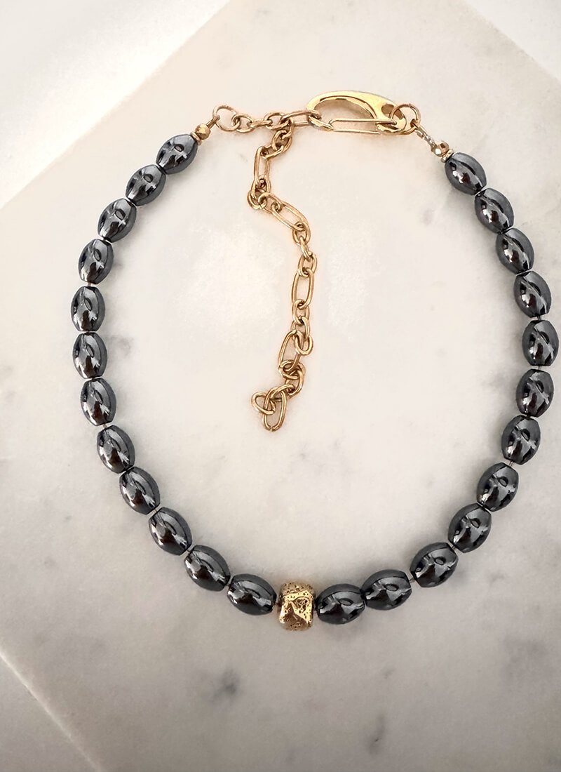 Τσόκερ απο αιματίτη και ατσάλινα χρυσά στοιχεία.